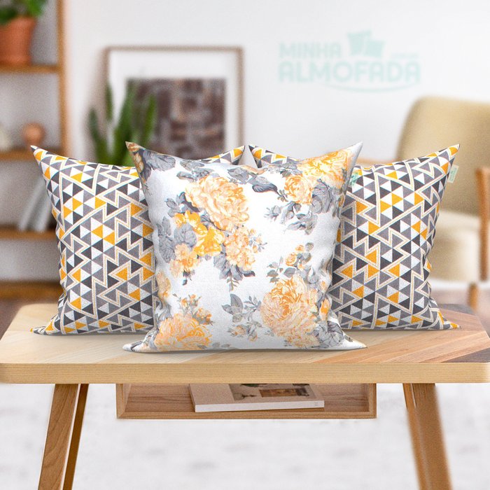 Capa para Almofada Amarela Estampada 3 Unidades 60cm x 60cm com zíper