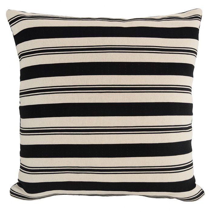Capa para Almofada - Quadrada - Linho listras pretas e brancas frente x Verso: preto