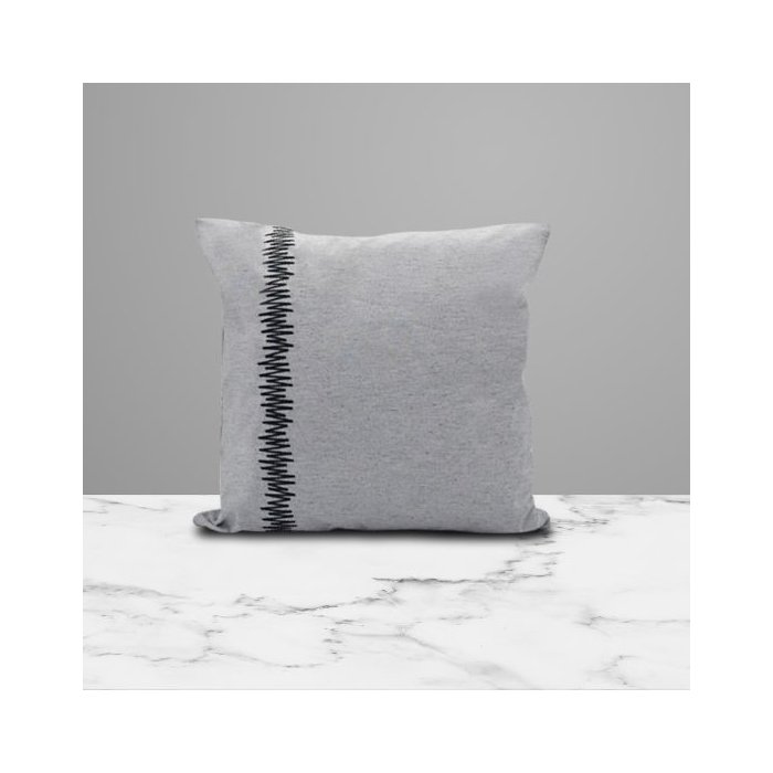 Capa para Almofada Tricoline Eco Cinza Bordado Marinho 45x45 Cubolab