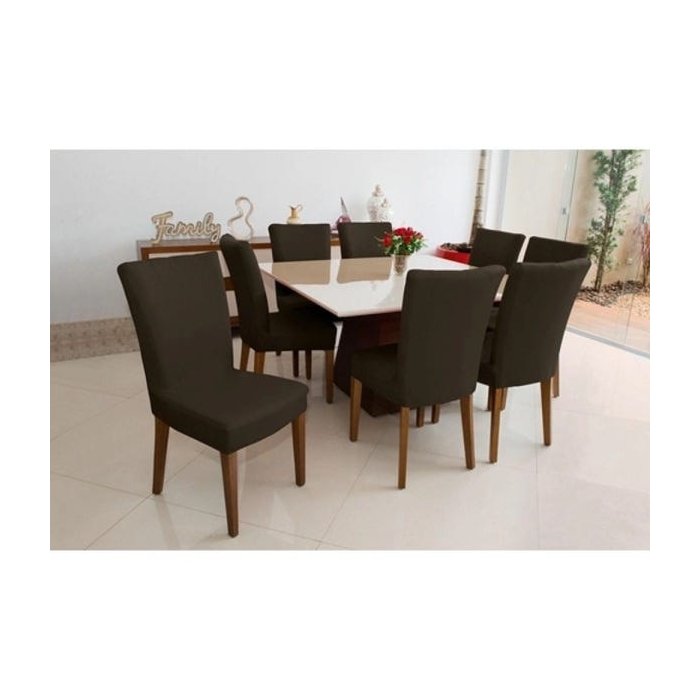 Capa para cadeira Lisa kit 8 lugares malha - Marrom Marrom