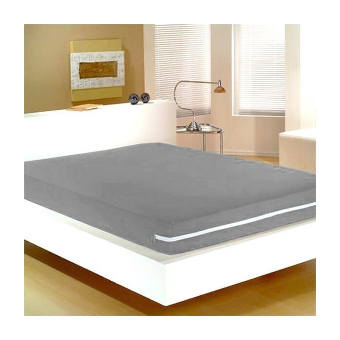 Capa para Colchão (70% Algodão e 30% Poliéster) Doce Vida Solteiro 20 Malha com Zíper Cinza