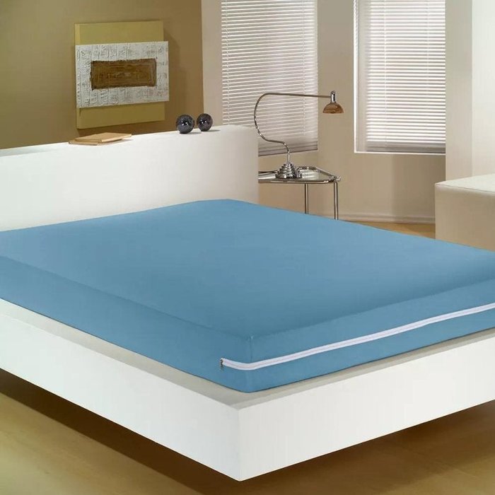 Capa para Colchão Casal Malha Algodão com Zíper Azul