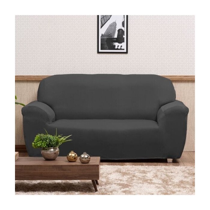 Capa para Sofá de Malha com Elástico Alto Padrão Cinza Escuro - 3 Lugares
