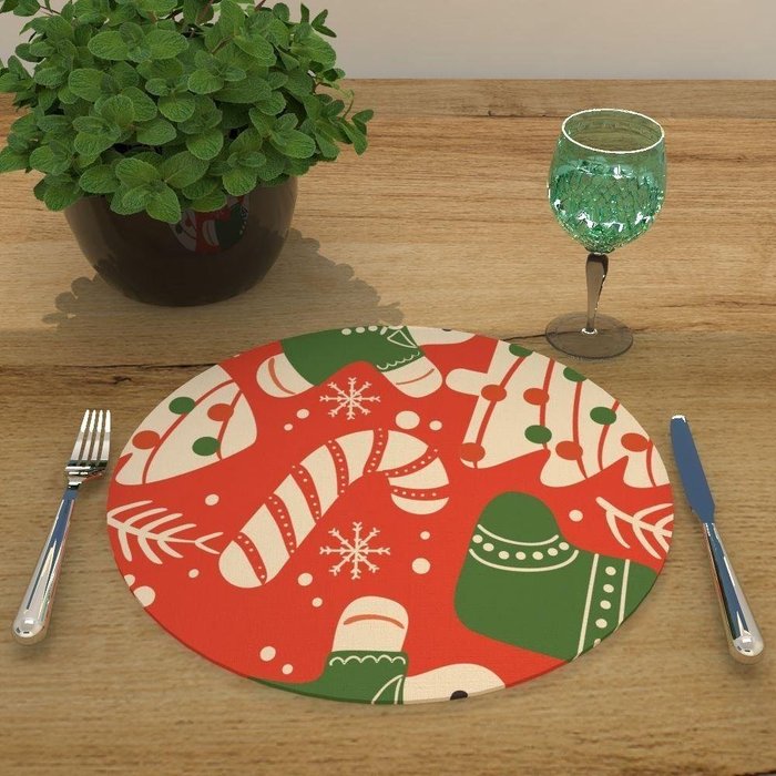 Capa para Sousplat Bengala Sapatinho e Pinheirinho de Natal Tecido Oxford - 35x35cm 4 Peças -
