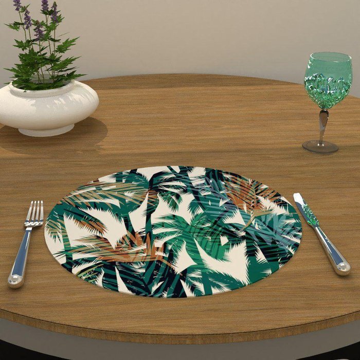 Capa para Sousplat Coqueiros Tons de Verde Tecido Oxford - 35x35cm 4 Peças -