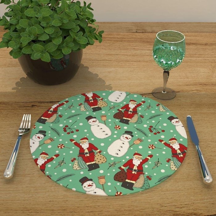 Capa Para Sousplat Olaf e Papai Noel Noite De Natal Tecido Oxford 35x35cm