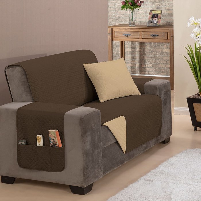 Capa Protetor de Sofá 2 Lugares King Impermeável Dupla Face Assento 1,20m Tabaco e Cáqui
