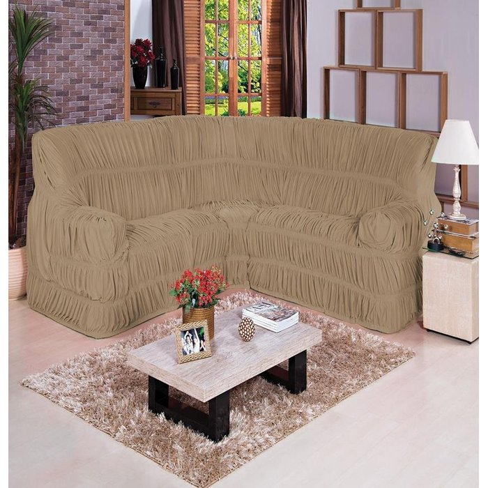 Capa Protetor para Sofá de Canto 21 Elásticos Grande Malha Gel Avelã Avelã
