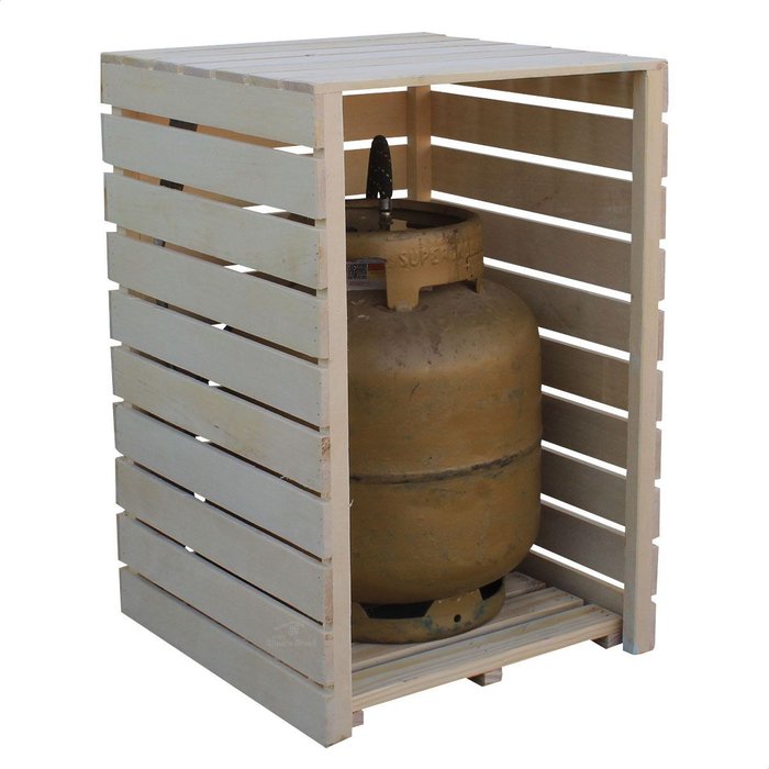 Capa Protetora Botijão de Gás de Cozinha em Madeira Maciça Cru com Suporte Cru
