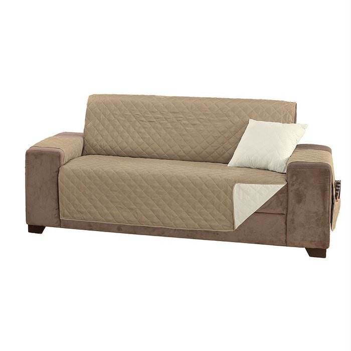 Capa Protetora de Sofá King 4 Lugares Manu Matelado Dupla Face:cáqui e Palha