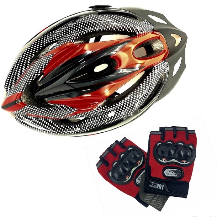 Capacete Para Andar de Bicicleta E luvas de Proteção - Vermelho