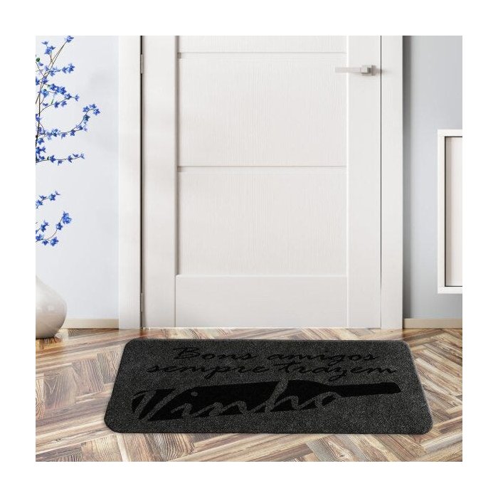 Capacho Carpet Bons Amigos Sempre Trazem Vinho Cinza -