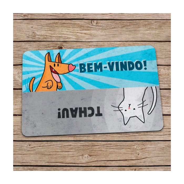 Capacho Eco Slim Cão e Gato Bem Vindo Tchau