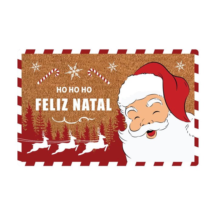Capacho Feliz Natal Papai Noel em Fibra de Coco 60x40cm