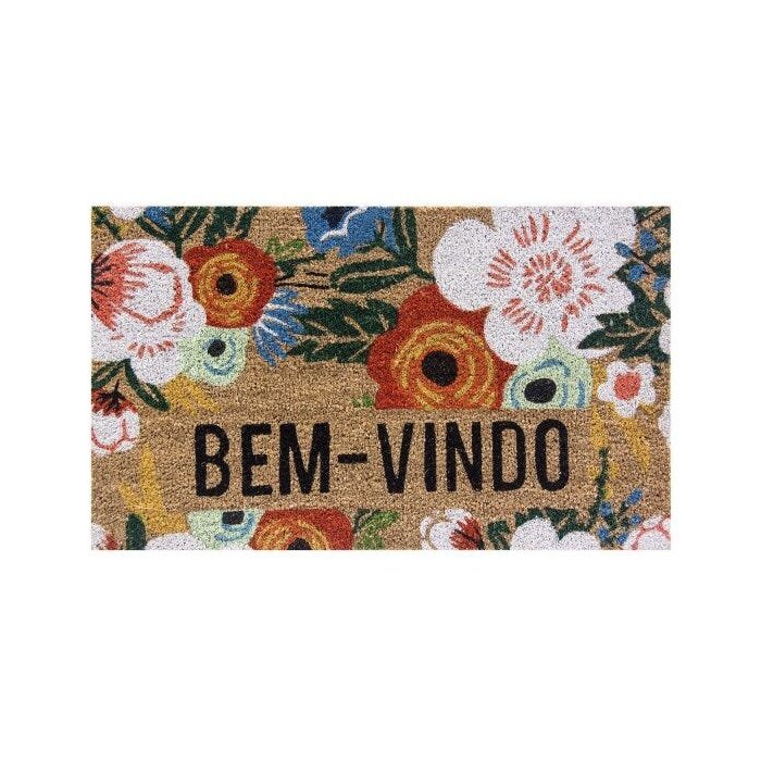 Capacho Fibra de Coco 45cmx75cm Colorful Bella Casa Flores Colorido