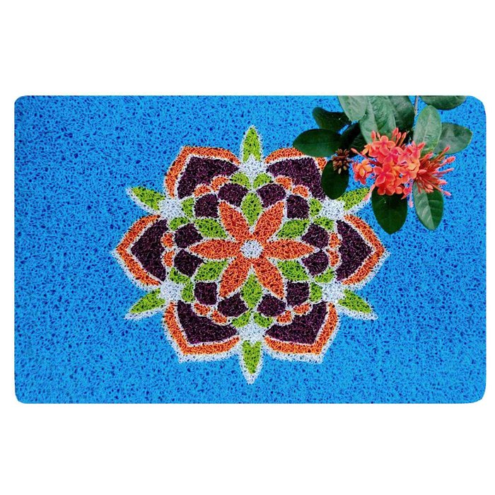Capacho Mandala Azul Céu Tapete Limpa Pé Colorido Decoração Esotérico Porta Zen Energias 60x40