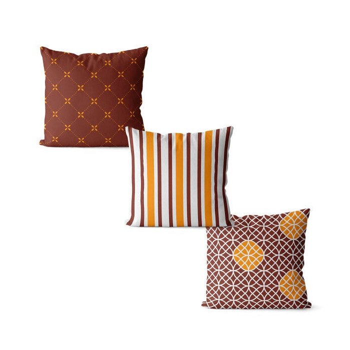 Capas Almofadas Geométricas Vermelho Laranja Branco - 3 unid