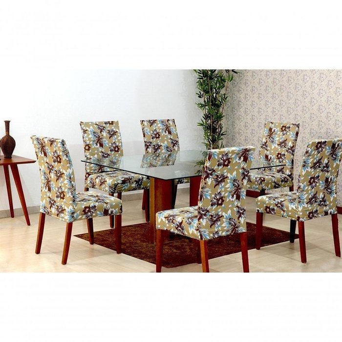 Capas de Cadeira 06 Lugares Floral Bege [f101] Floral Bege