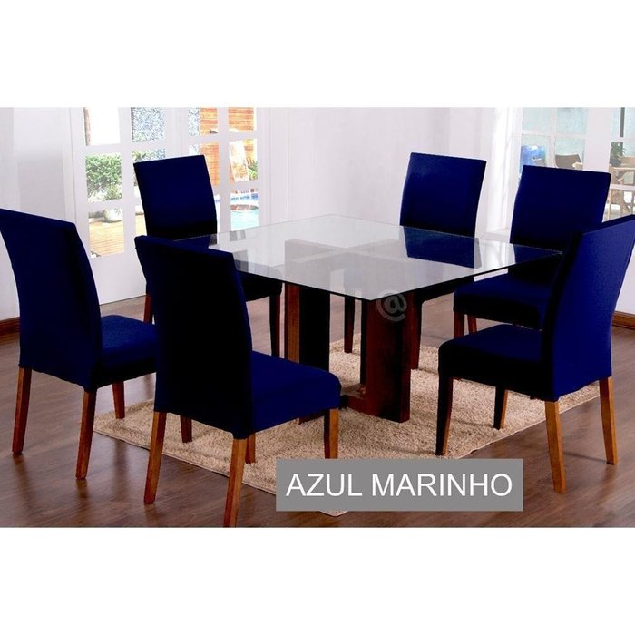 A capa para cadeira além de ser uma ótima opção para proteger as cadeiras, ajuda a renovar o ambiente gastando pouco. Ela é confeccionada em tecido malha gel elastano, é um tecido que tem alta capacidade de esticar e encolher, dessa forma encaixa perfeitamente em vários modelos de cadeira estofada, como estofada só no assento, estofada no assento e encosto e estofada inteira. Contém: 04 Capas para Cadeiras . Veste cadeira com as seguintes medidas aproximadas: Altura do assento: até 12cm; Largura do encosto: de 40cm á 50cm; Largura e/ou comprimento do assento: de 40cm á 50cm; Altura do encosto (á partir do assento): de 50cm á 60cm. Composição: Tecido Malha Gel 100% Poliéster. Altura do Produto: 6.00 | Comprimento do Produto: 40.00 | Peso do Produto: 0.60 | Largura do Produto: 35.00 | Estado de Origem: SP | Material para filtro: Não possui | Ambiente: Cozinha | Tecido: 100% Poliéster | Características: Contorno Com Elástico | Cor: Azul Marinho | Marca: Bell Enxovais