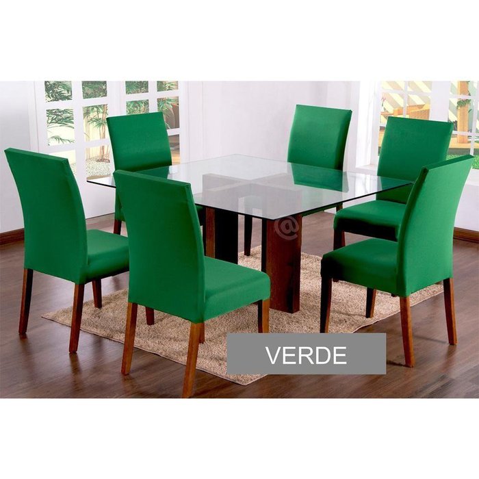 Capas Para Cadeiras De Jantar 06 Peças Em Malha Gel Lisa - Verde