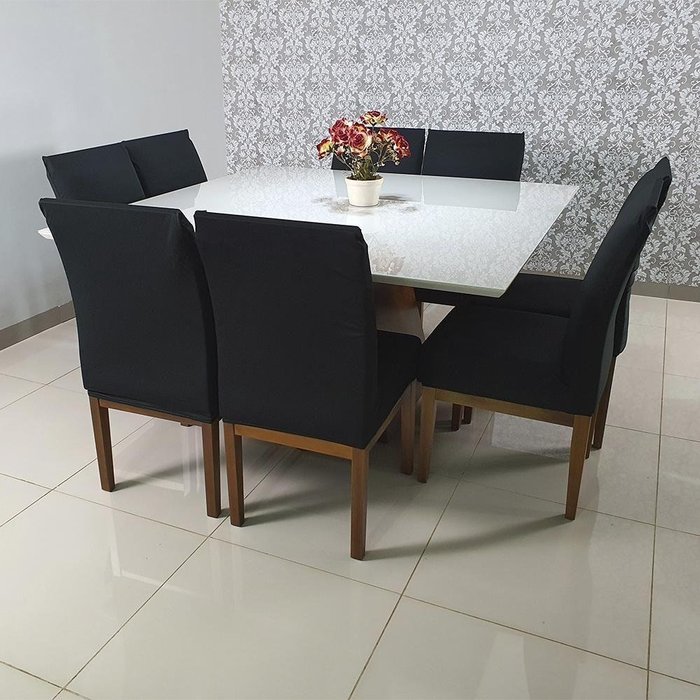 A capa para cadeira além de ser uma ótima opção para proteger as cadeiras, ajuda a renovar o ambiente gastando pouco. Ela é confeccionada em tecido malha gel elastano, é um tecido que tem alta capacidade de esticar e encolher, dessa forma encaixa perfeitamente em vários modelos de cadeira estofada, como estofada só no assento, estofada no assento e encosto e estofada inteira. Contém: 08 Capas para Cadeiras . Veste cadeira com as seguintes medidas aproximadas: Altura do assento: até 12cm; Largura do encosto: de 40cm á 50cm; Largura e/ou comprimento do assento: de 40cm á 50cm; Altura do encosto (á partir do assento): de 50cm á 60cm. Composição: Tecido Malha Gel 100% Poliéster. Altura do Produto: 6.00 | Comprimento do Produto: 40.00 | Peso do Produto: 0.70 | Largura do Produto: 35.00 | Estado de Origem: SP | Material para filtro: Não possui | Cor: Preto | Ambiente: Cozinha | Tecido: 100% Poliéster | Características: Contorno Com Elástico | Marca: Bell Enxovais