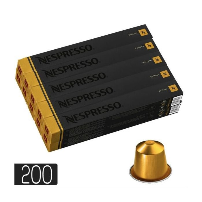 Contém: 200 cápsulas de café torrado e moído Volluto para o sistema Nespresso.