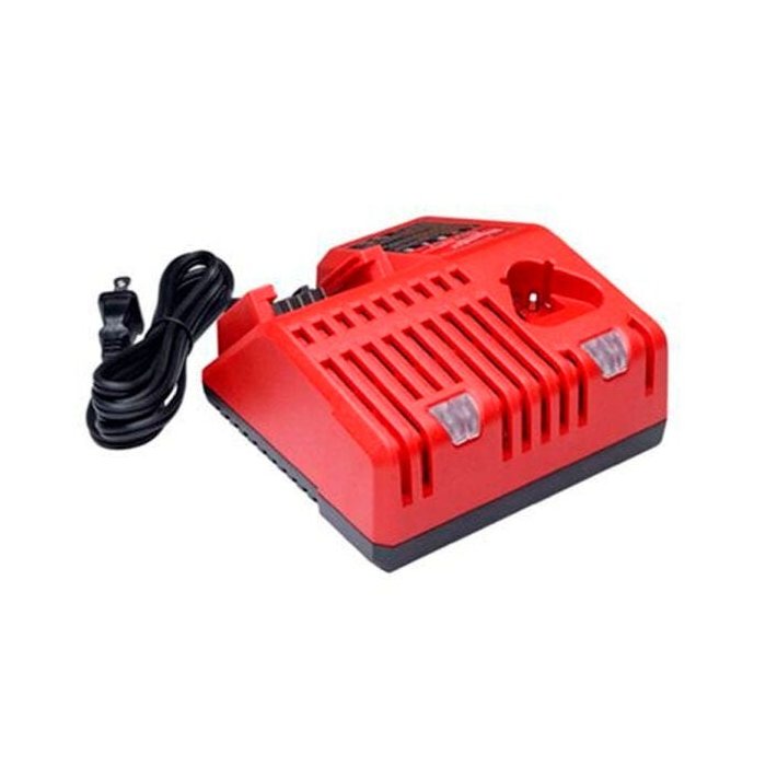 Carregador para carregar todas as baterias de todos os modelos Milwaukee M12 e M18. Carregador com 2 entradas, 1 entrada "padrão M12" e outra entrada "padrão M18".