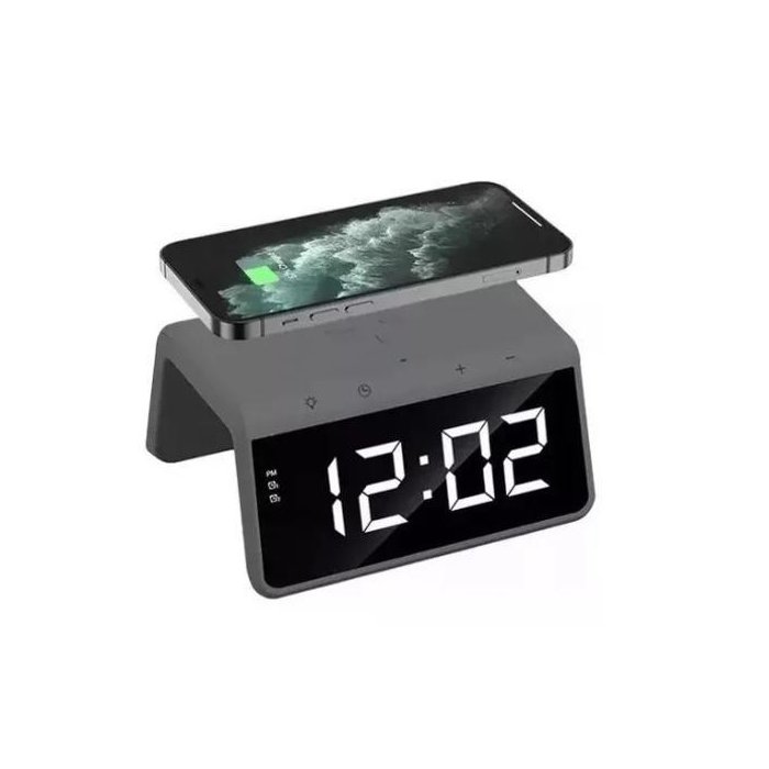 Chegou a nova base de carregamento sem fio com relógio digital, despertador e luminária.