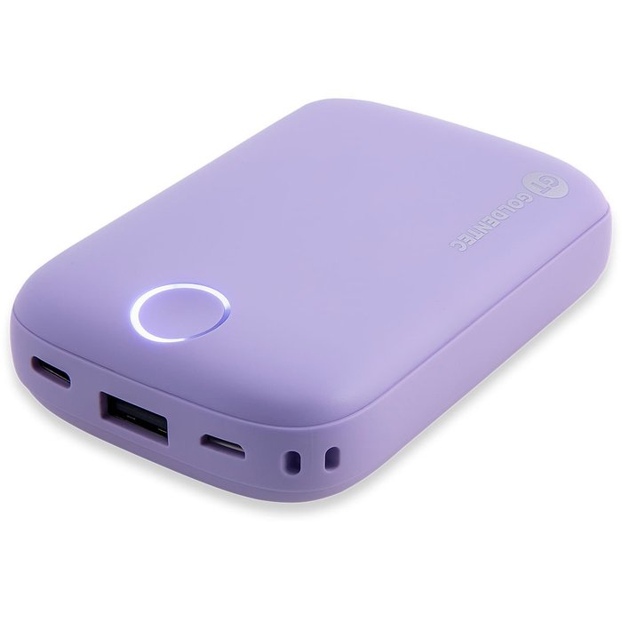 | plaintext_description_meli | Carregador Portátil 10000mAh Roxo Goldentec ESPECIFICAÇÕES TÉCNICAS Marca Goldentec Cor Roxo Material ABS / PC Voltagem(W) Entrada: 10W Saída 10.5w Corrente (A/MAh) Entrada: 2000mAh Saída 2100mAh Capacidade Bateria (MAh) 10000mAh Composição da Bateria Polímero de lítio Número de Baterias 2 Tempo de Carga 6h Conectores Entrada 1 Micro USB + 1 USB-C Conectores Saída 1xUSB Características Produto 1 Saídas USB Carrega facilmente Smartphones e tablets Proteção contra sobrecarga, super aquecimento e curto circuito Indicador de carga Compatível com Android e IOS Tamanho (CxLxA) 63 x 23.5 x 92mm Peso 179g Conteúdo da Embalagem 1 Carregador Portátil 10000mAh Roxo Goldentec |