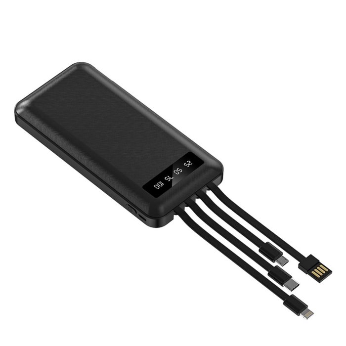 Carregador Portátil 10.000mAh 4 cabos DescriçãoEstamos preocupados em oferecer a você não somente um Produto, mas a melhor experiência possível de compra, orientando-o em quaisquer dúvidas e solucionando todos os eventuais problemas. Nossa equipe está sempre à disposição para responder às suas perguntas da melhor forma possível. Além disso, buscamos oferecer Produtos de alta qualidade com um preço acessível, para que você se sinta realizado(a) em sua compra. Agradecemos pela preferência! :) Nosso Carregador Portátil Universal de 10.000mAh é ideal para você ir a qualquer lugar, e o mais importante, se manter conectado! Estamos oferecendo um Power Bank com duas saídas, para você carregar, simultaneamente, até dois aparelhos. Você poderá fazer suas viagens e se manter conectado SEMPRE. Carregue seu celular, seu smartwatch, caixa de som, tablet ou qualquer equipamento. Esse Carregador é UNIVERSAL.Especificações: - Modelo: RL-01363 - Capacidade: 10.000mAh - Dimensões: 140 68 20mm - Peso: 228g - Medida do Cabo: 5cm - Bateria: Polímero de Litio – Características: - Indicador de carga com visor. - Usa bateria de polímero de lítio para torna-lo mais fino e alta potência. - Muita energia, com design elegante, leve e ultrafino.- Fácil de transportar- Leve e compactor- Marcas compatíveis (IOS e Android).- Conector compatível (Micro, Tipo-C, Lightning e USB)- Prático: com a tecnologia pass through charging, pode carregar seus dispositivos e ser recarregado ao mesmo tempo. - Potente: tem capacidade para recarregar a bateria de um Smartphone etc... - Versátil: permite a recarga simultânea de 4 aparelhos com muito mais velocidade. - Seguro: com moderno sistema de gel, apresenta baixa dilatação e elimina riscos de vazamento. - Chip de reconhecimento de tensão inteligente detecta automaticamente a tensão. - Construído em proteção da bateria IC para evitar o excesso de carga, sobre o descarregamento e curto-circuito. - Universal, compatível com Smartphones (Android, IOS), Smartwatches, Fones de Ouvido Bluetooth, Controles sem fio, Tablets, MP4, PSP/GPS, Câmeras, dentre outros equipamentos; - O design desse Produto facilita o transporte e a manutenção. Cabe facilmente em bolsas e em bolsos; - Possui luzes indicativas de LED para mostrar o nível de carga armazenado no Power Bank; - Possui proteção múltipla contra descarga, sobrecarga e curto-circuito; - Produto Original. Obs.: Use a primeira carga que vem de fábrica, após zerar a carga, coloque para carregar o power bank, no mínimo 24 horas, após isso poderá usar normalmente. Cores disponíveis: Preto e branco, basta escolher na hora da compra. Itens da embalagem1 – Carregador Power Bank 10.0001 – Cabo USBImagem Meramente Ilustrativa !!