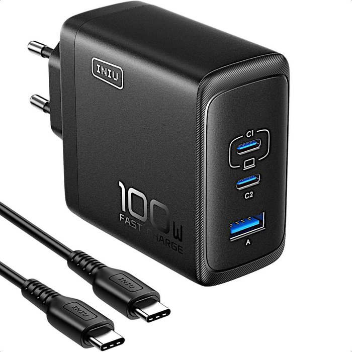Carregador Rápido 100W 3 Portas Usb-C Gan Iphone 14 15 Mac