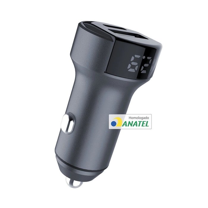 Carregador Veicular Ultra Rápido 36w com Mostrador de Voltagem Geonav Cinza UNICA