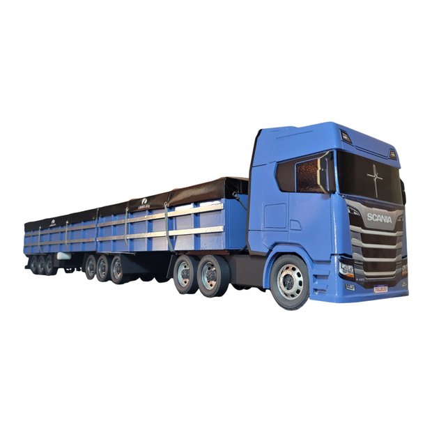 Carreta Scania R450 Rodotrem Graneleiro Madeira Miniatura - Azul Ncs Azul NCS