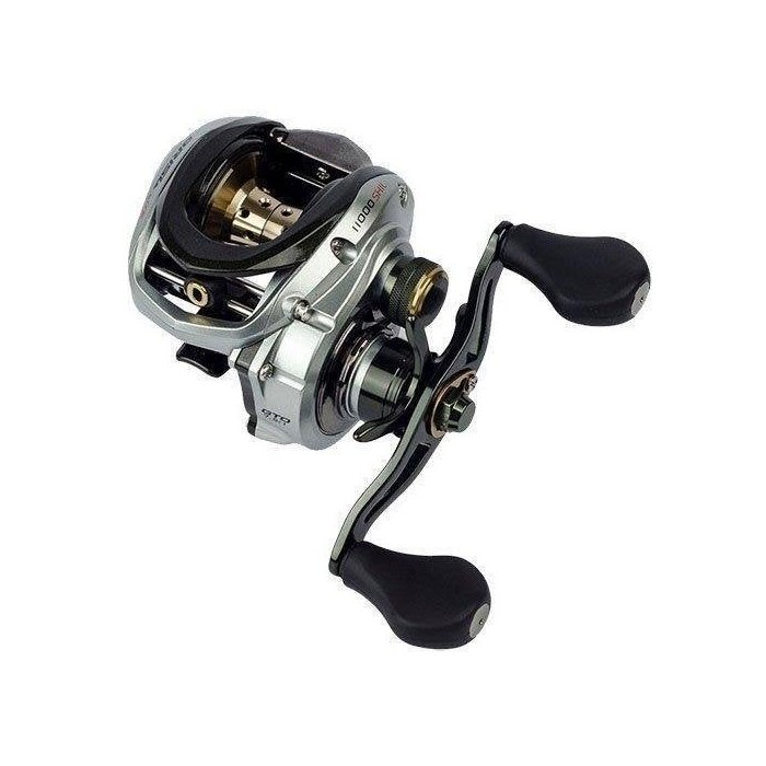 Duplo sistema de freio: centrífugo de 4 pinos e freio magnético com 27 posições de ajuste externo. Estrela de freio e botão de ajuste do carretel com regulagem ponto a ponto.