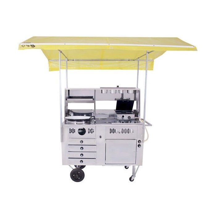 O Carrinho Ambulante é ideal para Lanches, Cachorro Quente e Pastel. Esse Carrinho já é pronto para o trabalho, conta com tacho esmaltado nº18, molheiras quentes e frias, gavetas para o armazenamento dos pastéis e chapa de lanche com prensa de 31x31cm.