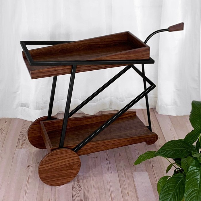 Carrinho Aparador de Bebidas Adega Bar com Rodas Multiuso Auxiliar Estilo Rustico Preto com Madeira