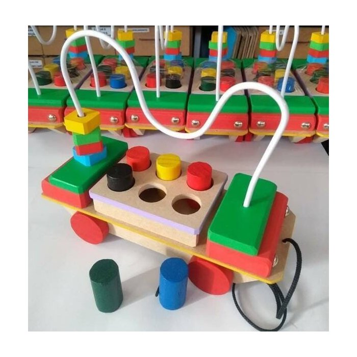 Lindo Carrinho de Madeira com aramado e pinos Coloridos