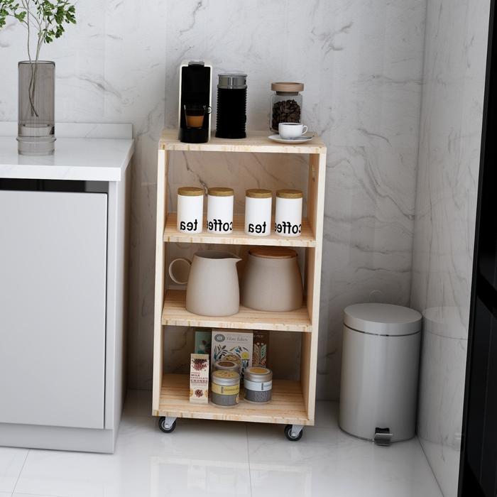 Carrinho Auxiliar com Rodinhas – MDF Branco ou Madeira Pinus Bege – 4 Prateleiras