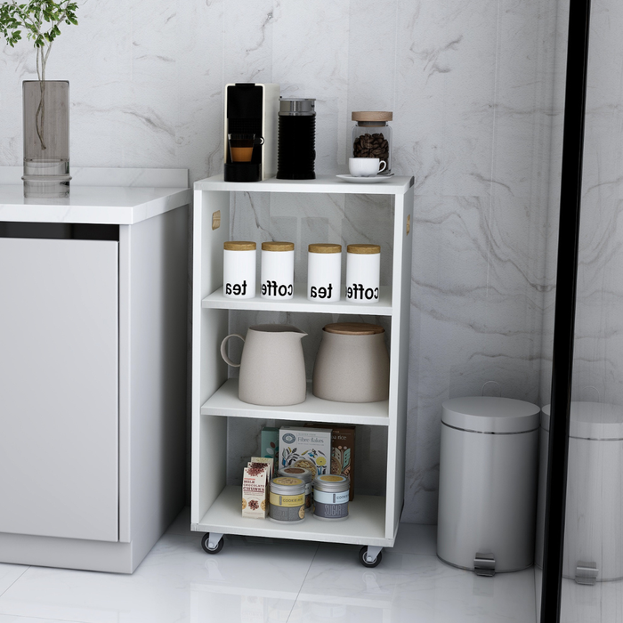 Carrinho Auxiliar em MDF TX Branco com Rodinhas