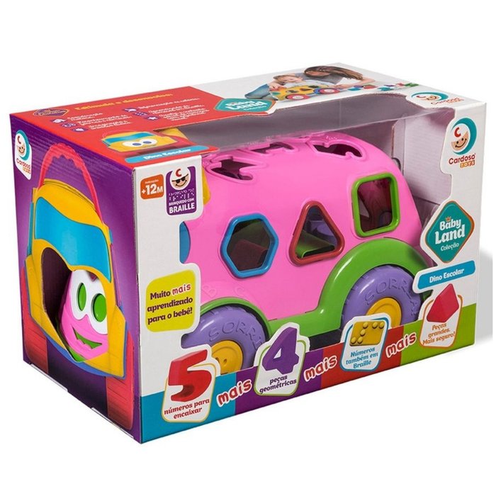 Carrinho BABY LAND Dino Escolar 3028 ônibus Didático Infantil Encaixe Formas Presente Dia da - MENIN
