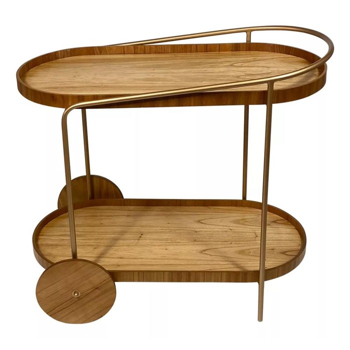 Carrinho Bar Adega Moscato com 2 Prateleiras Metal Dourado com Madeira Laminada dourado