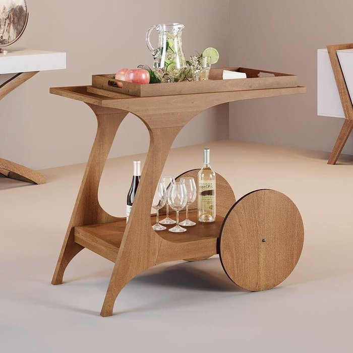 Carrinho Bar de Madeira Maciça - Topázio - Móveis Montanhês