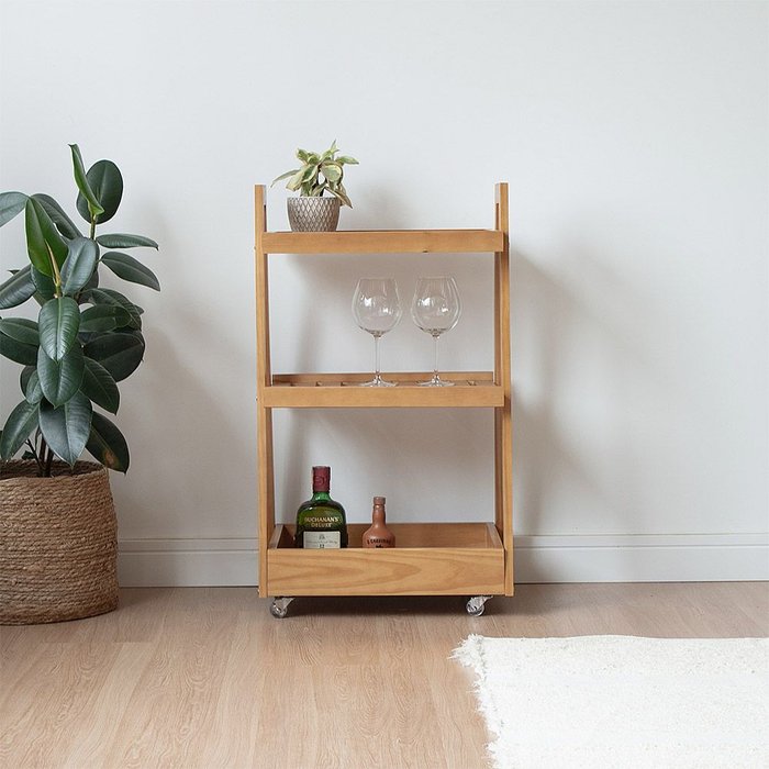 "O Carrinho Bar Stella é um produto pensado para você ter praticidade na sua casa e para melhorar seus momentos de lazer! Ele possui rodízio em gel, uma prateleira ripada que dá um charme ao produto e duas prateleiras do tipo bandeja, onde a última cabem garrafas em pé para acomodar melhor suas bebidas. Os pés angulares no estilo alça é perfeito para mover o carrinho para qualquer canto da sua casa e de forma leve e prática "