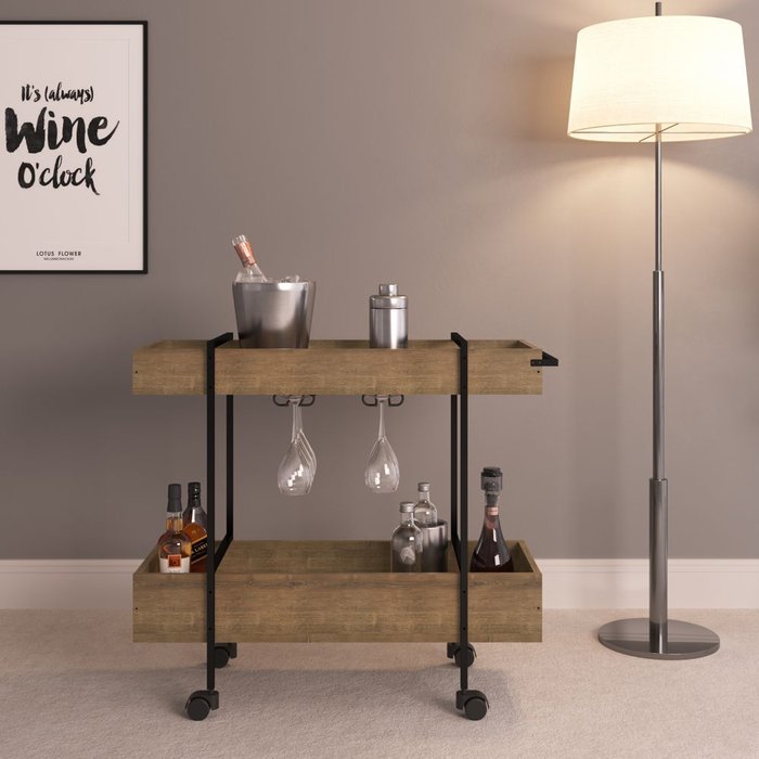 Carrinho Bar Estilo Industrial 90x33cm 27813 Steel Quadra Artesano