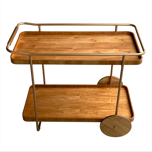 Carrinho Bar Estilo Industrial Moderno e Grande - Madeira Maciça Dourado