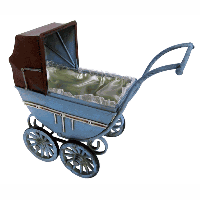 CARRINHO BEBE 28CM MINIATURA METAL VINTAGE RETRO DECORATIVA - Azul Azul