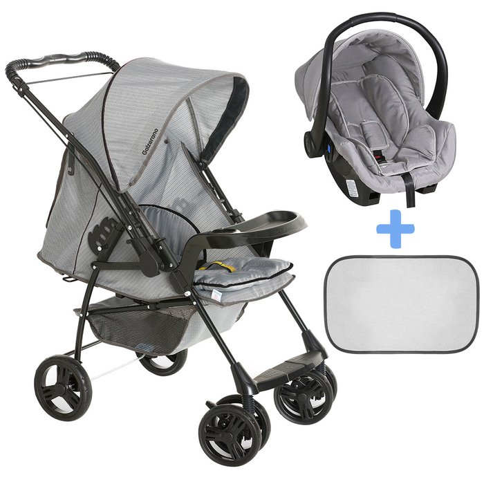 Carrinho Bebe Berço Passeio Reversível Galzerano 15kg Milano Cinza + Bebê Conforto + Protetor Solar