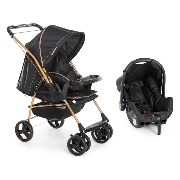 Tipo: Carrinho de Passeio Reversível com Travel System Acompanha bebê conforto Estrutura: Aço resistente Revestimento: 100% poliéster, lavável Encosto reclinável com múltiplas posições Capota retrátil e removível Redutor de assento incluso Sistema de segurança com cinto de 5 pontos e alças ajustáveis Trava de segurança Compatível com crianças de 0+ até 15 kg Dobrável e ideal para transporte no porta-malas
