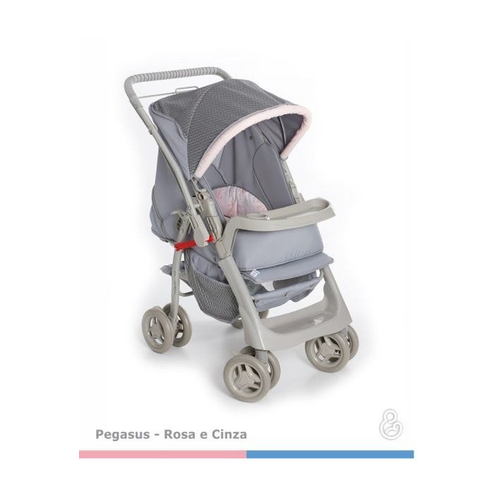 Carrinho Bebê Pegasus Cinza Rosa Galzerano Cinza
