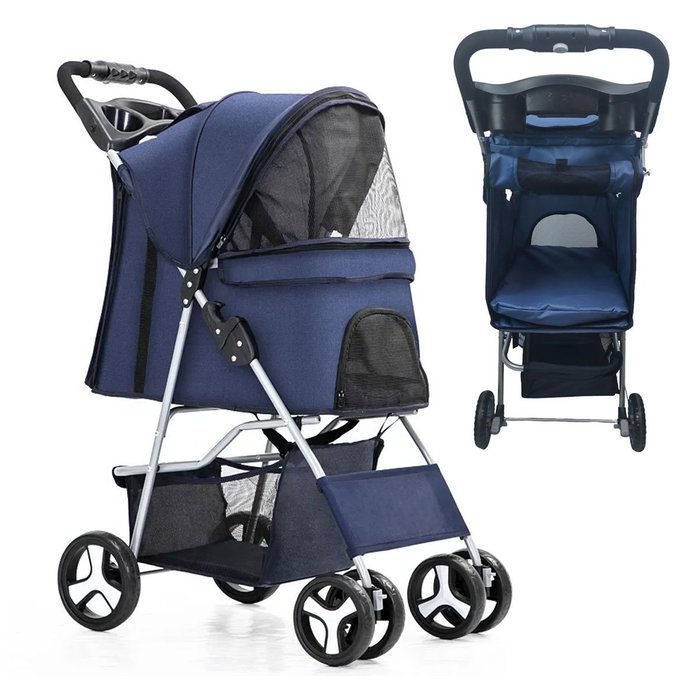 Carrinho Cao Gato Pet Passeio Animal de Estimaçao Transporte Seguro Dobravel Cesto Armazenamento por Azul